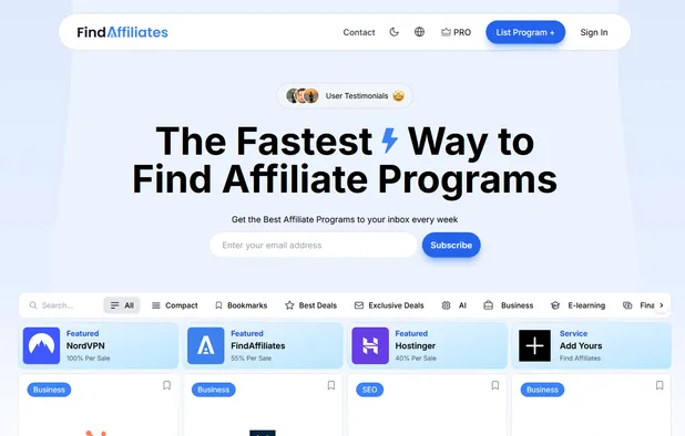 Enables affiliate and referral programs for SaaS, with Stripe integration, customizable commissions, mass payouts, user dashboards, analytics, and API support.